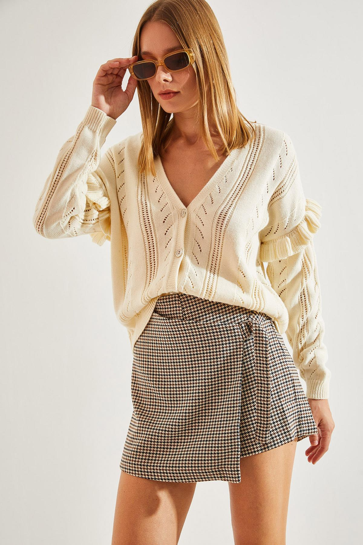 Ajurlu Fırfırlı Triko Hırka - Krem HIRKA modelleri