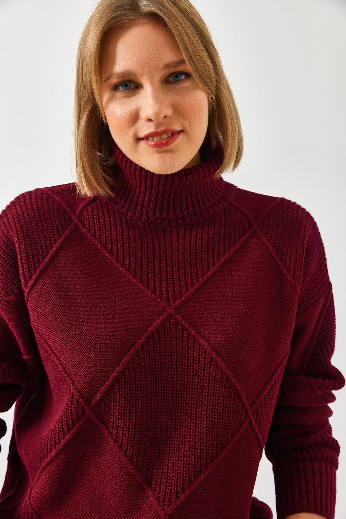 Balıkçı Yaka Triko Kazak 20246916 - Bordo KAZAK modelleri