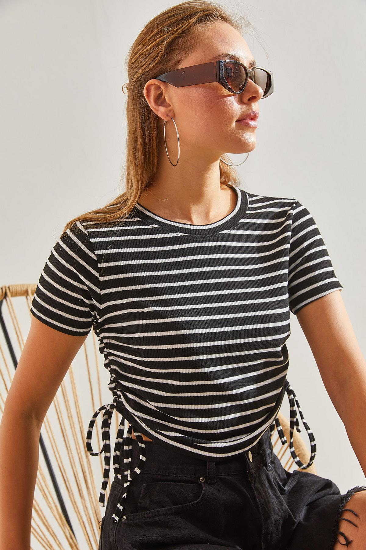 Bisiklet Yaka Çizgili Bluz - Siyah-Beyaz (60111032062)