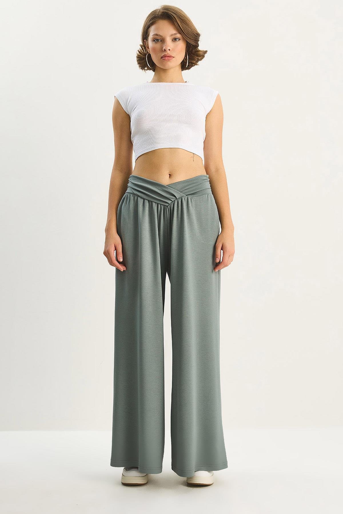 Kadın Asimetrik Bel Detaylı Cepli Rahat Modal Pantolon 2137 60283657 - Koyu Mint PANTOLON modelleri