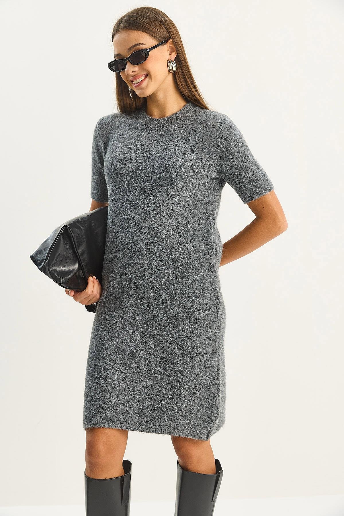 Kadın Bisiklet Yaka Kısa Kollu Yumuşak Dokulu Triko Elbise 2515 60283682 - Antrasit (60283682ANTRASİT)