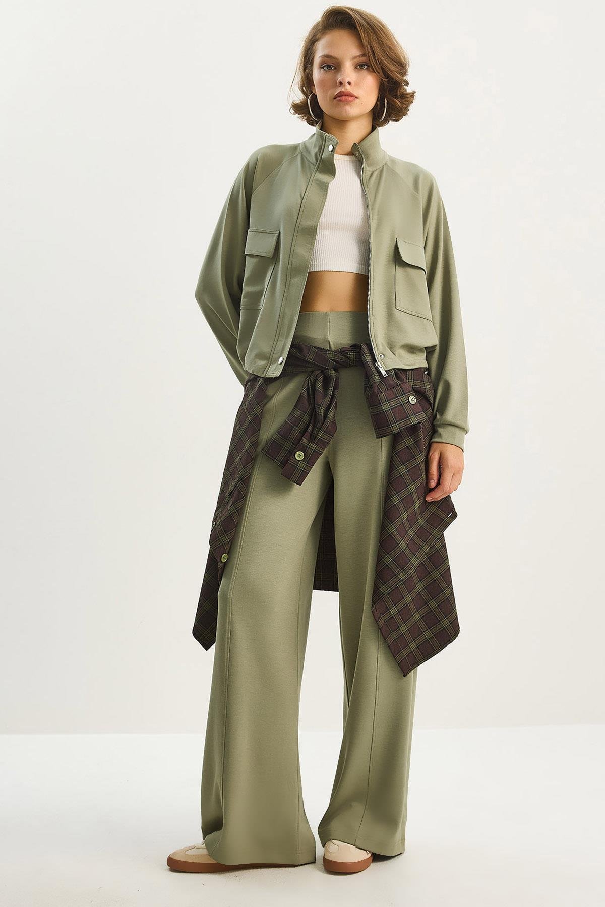 Kadın Çift Cep Detaylı Fermuarlı Lastik Bel Ceketli Bol Pantolonlu Modal Takım 4035 60283606 - Mint Yeşili (60283606046)