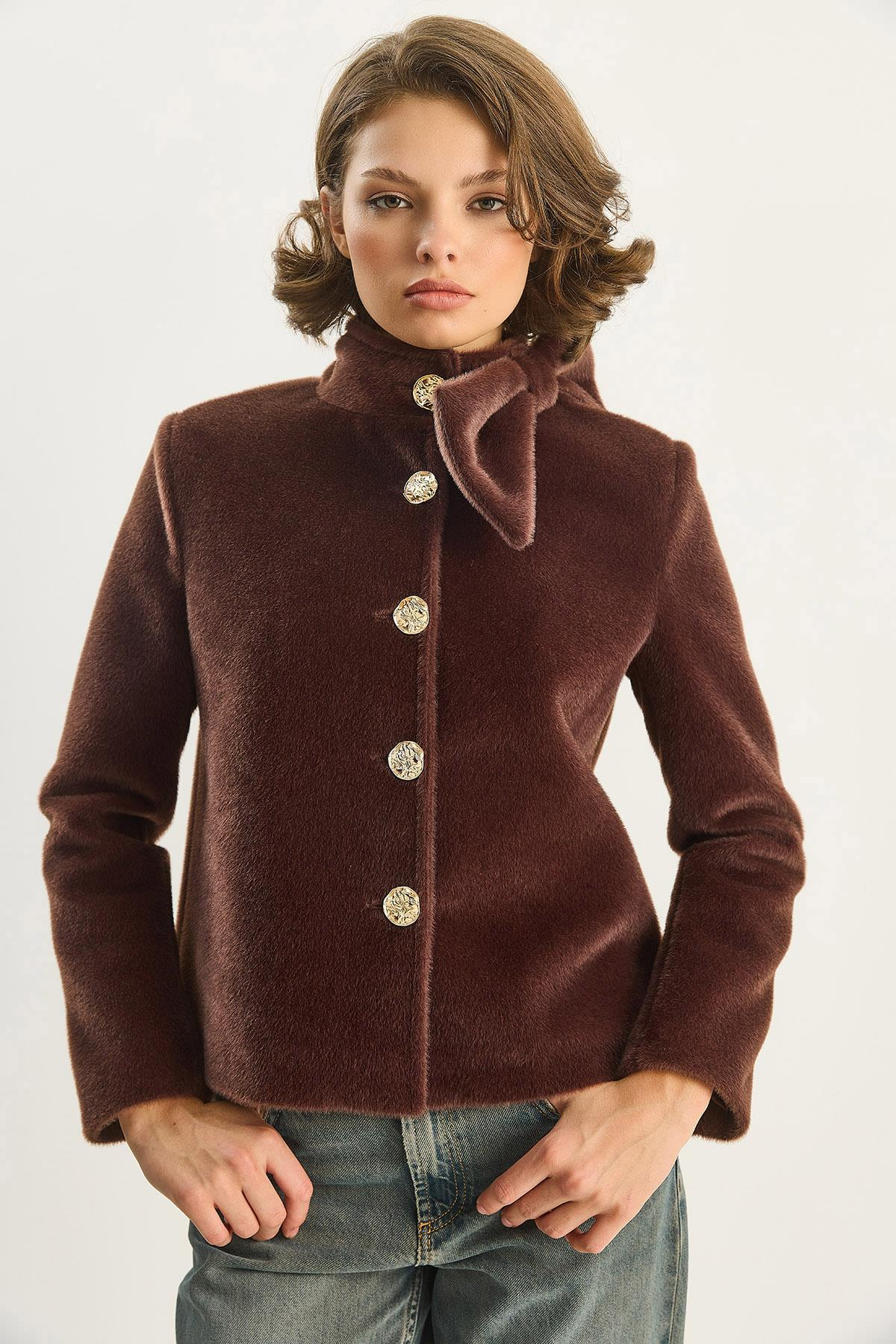 Kadın Fiyonk Yaka Gold Düğme Detaylı Astarlı Fox Ceket 0305 60283656 - Acı Kahve (60283656008514)