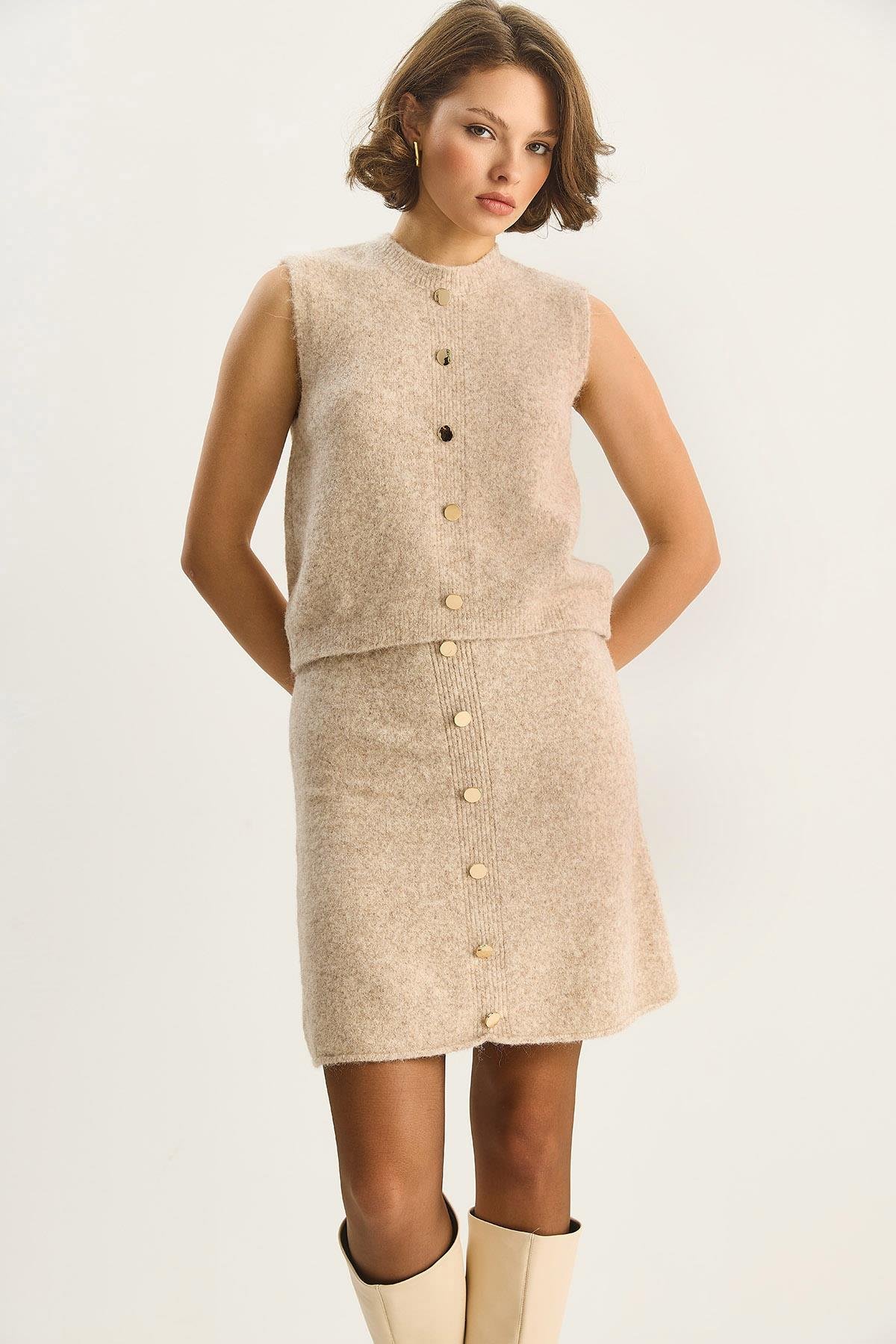 Kadın Gold Düğe Detaylı Triko Etek Bluz Takım 4982 60283665 - Bej (60283665FF5)