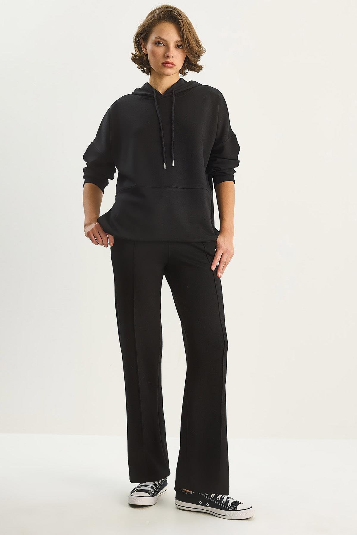 Kadın Kapüşonlu Üst Düz Kesim Pantolon Relaxed Modal Takım 2130 60283623 - Siyah ALT - ÜST TAKIM modelleri