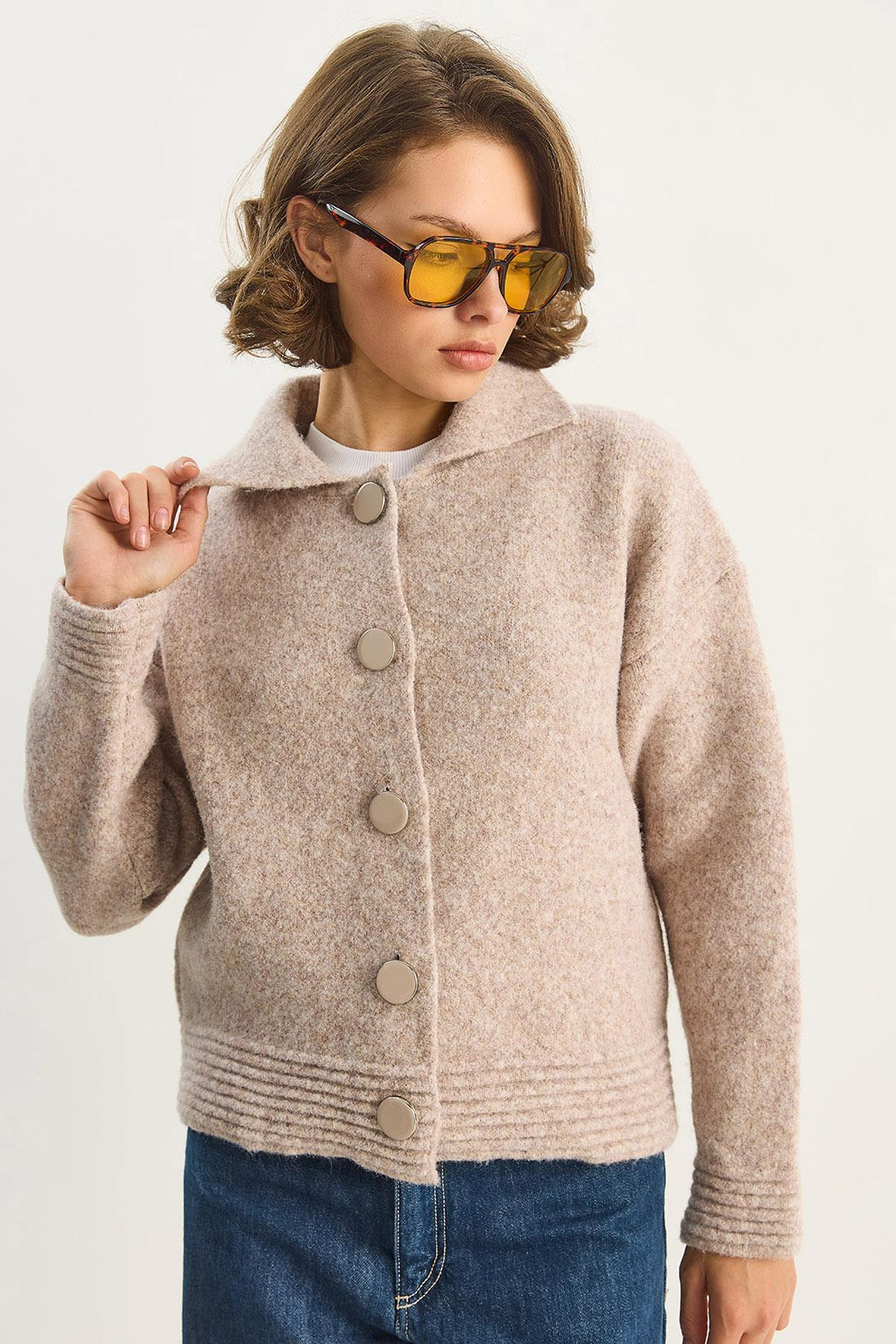 Kadın Polo Yaka Yumuşak Dokulu Düğmeli Triko Hırka 5086 60283663 - Bej (60283663FF5)
