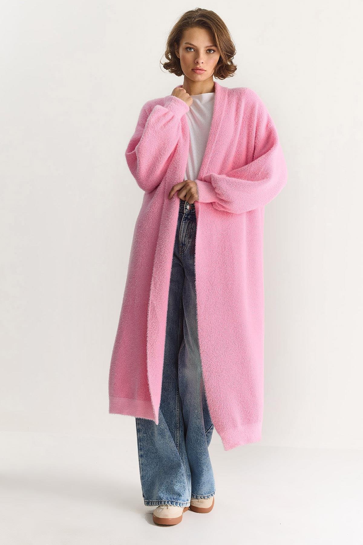 Kadın Şal Yaka Yumuşak Dokulu Sakallı Uzun Triko Yumoş Hırka TH251015 60283574 - Pembe HIRKA modelleri