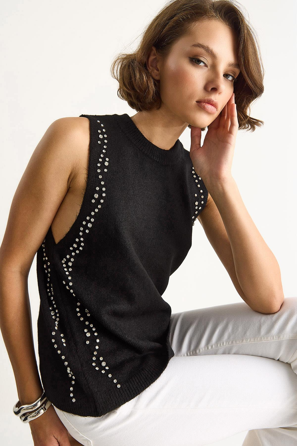 Kadın Taş İşlemeli Triko Bluz TA251003 60284094 - Siyah (60284094002)