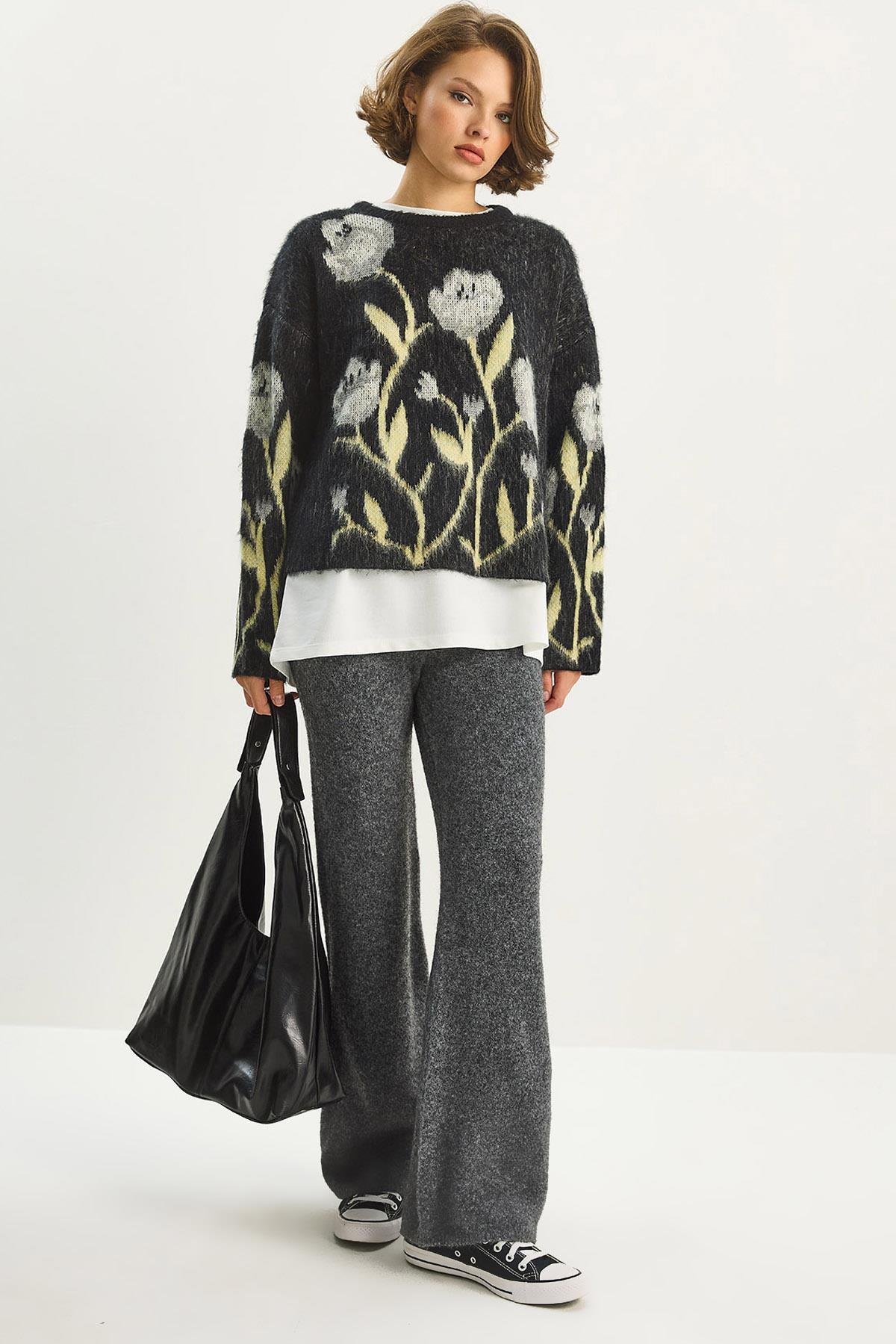 Kadın Yüksek Bel Bağlamalı Triko Palazzo Pantolon 5051 60283589 - Antrasit PANTOLON modelleri