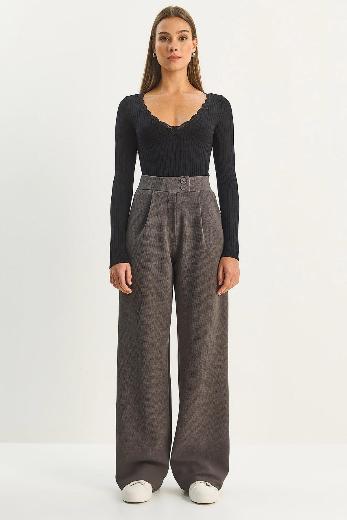 Kadın Yüksek Bel Çift Düğmeli Palazzo Pantolon 1014 60283577 - Antrasit (60283577ANTRASİT)