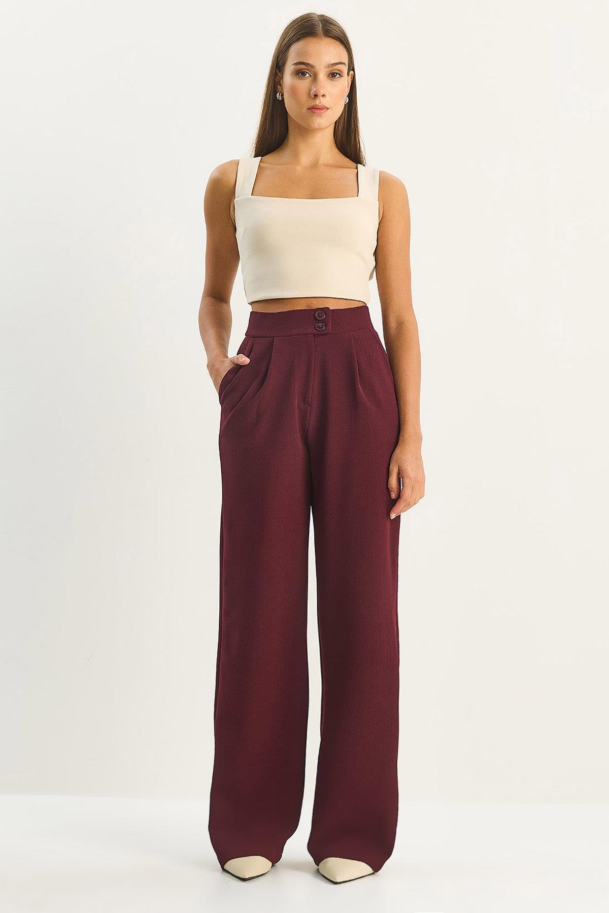 Kadın Yüksek Bel Çift Düğmeli Palazzo Pantolon 1014 60283577 - Bordo (60283577011)