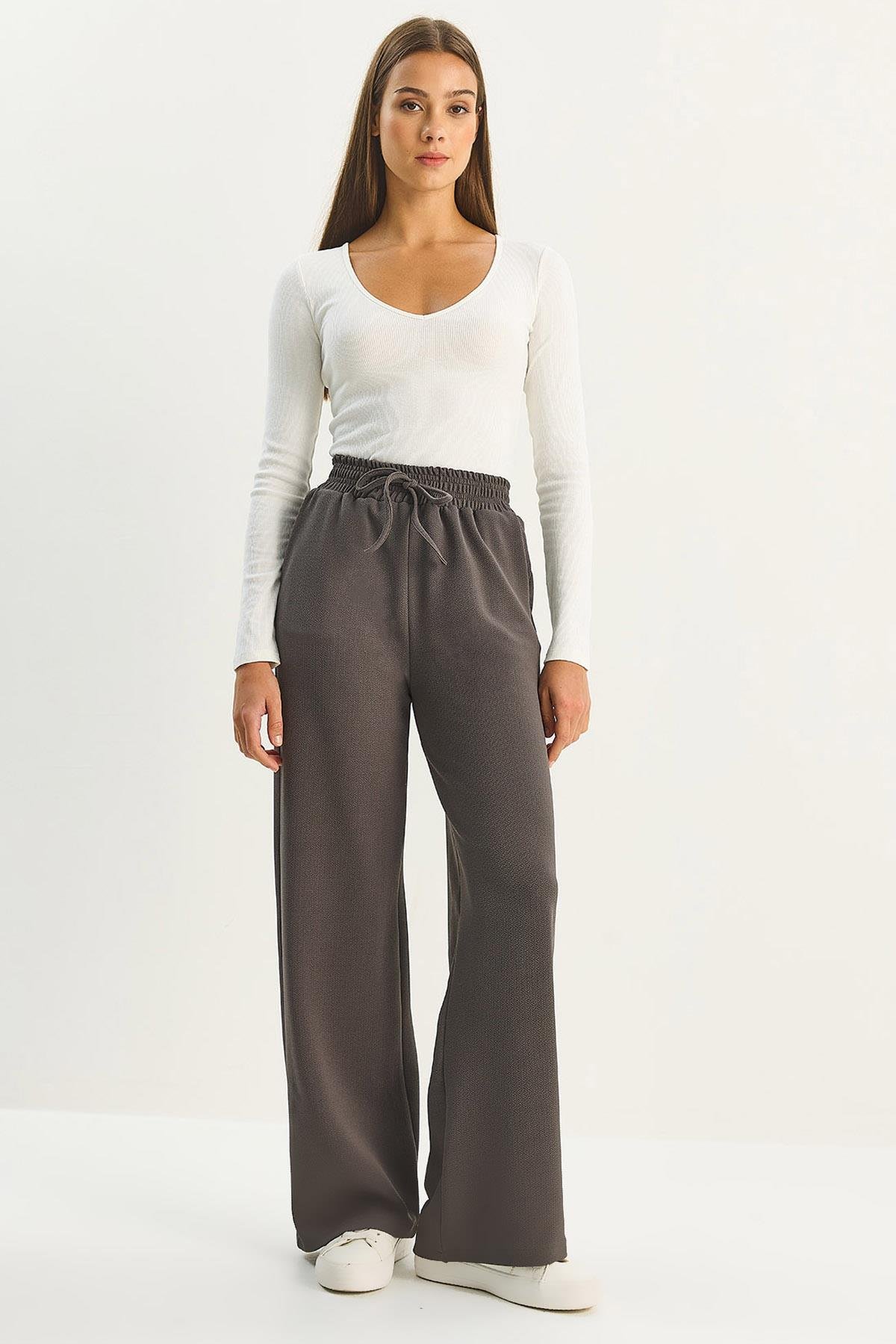 Kadın Yüksek Bel Lastikli Bağcıklı Dökümlü Bol Paça Pantolon 1006 60283579 - Antrasit (60283579ANTRASİT)