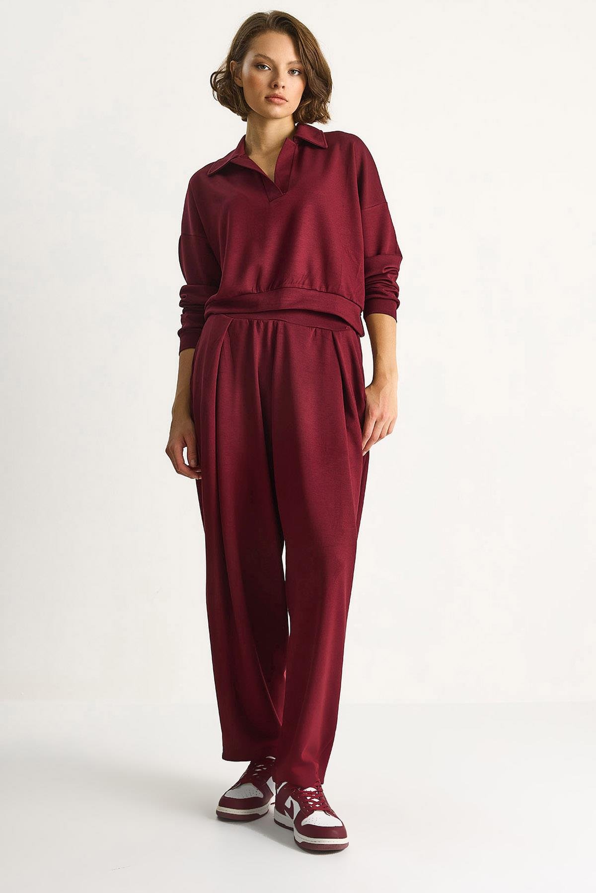 Kadın Yumuşuk Dokulu Polo Yaka Kısa Sweat Şalvar Viskon Dalgıç Takım 6818 60283530 - Bordo (60283530011)