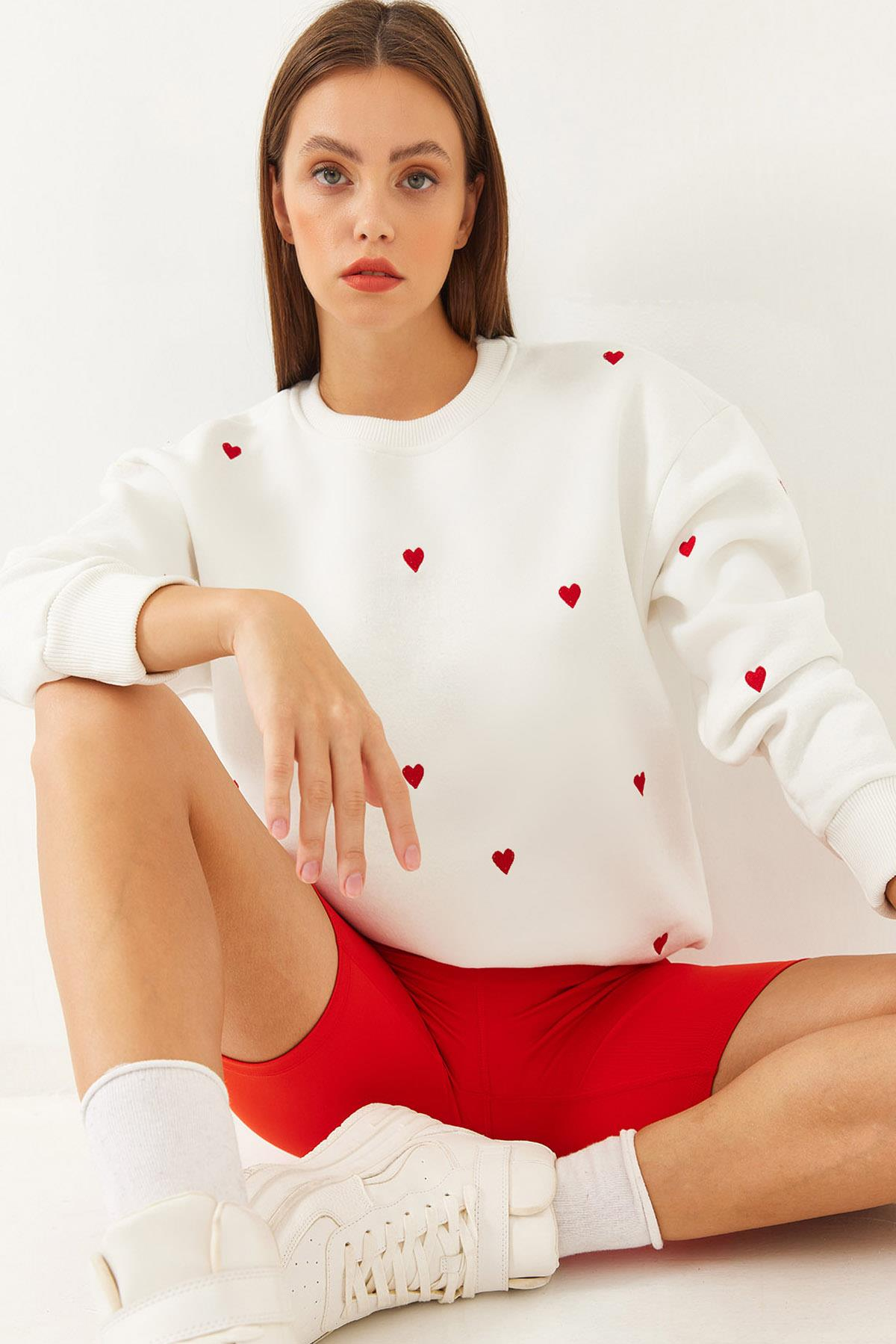 Kalp Nakışlı Sweatshirt MBHS016 60601016 - Ekru
