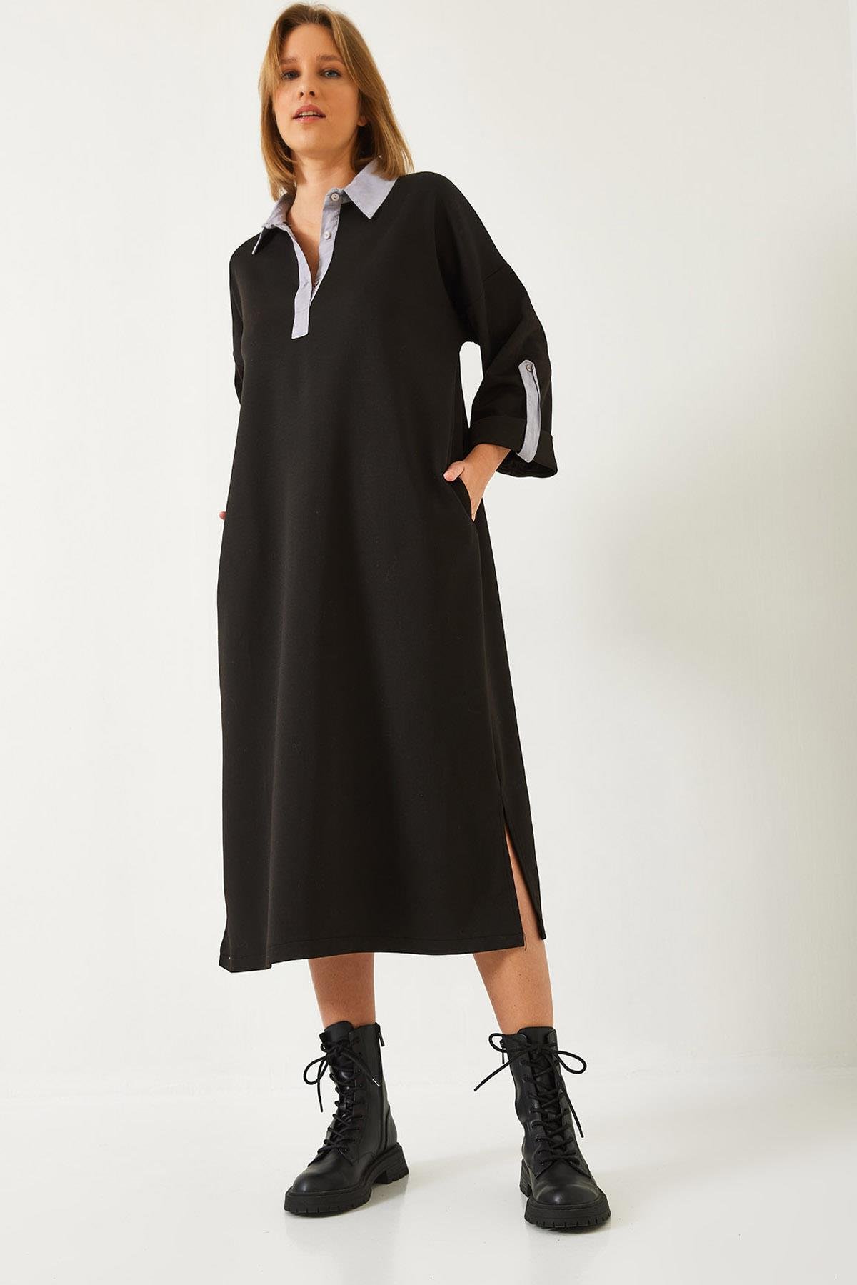 Kol Katlama Detaylı Uzun Elbise 8161 60351250 - Siyah (60351250002)