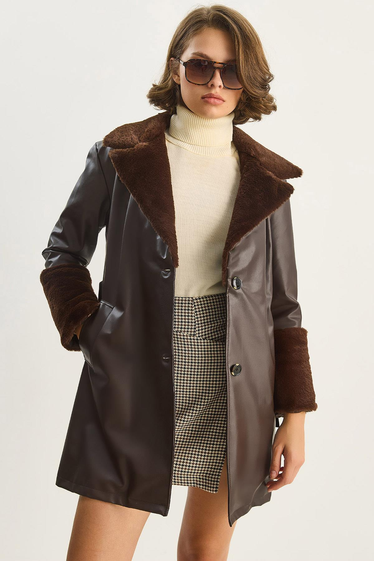 Kürklü Kısa Deri Kaban 2617 60261007 - Kahve (60261007030)