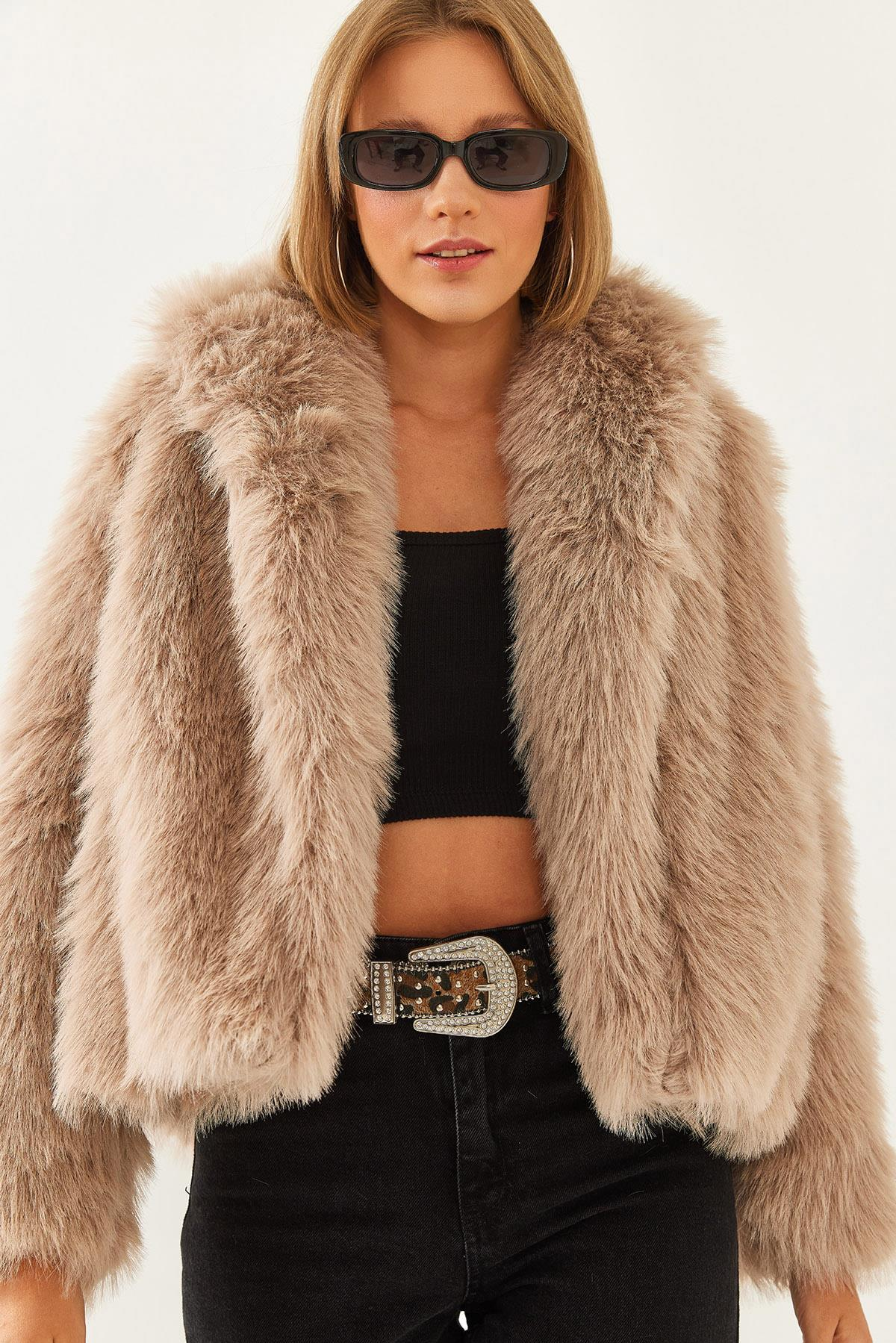Premium Suni Kürk Ceket 60251922 - Vizon (60251922069)